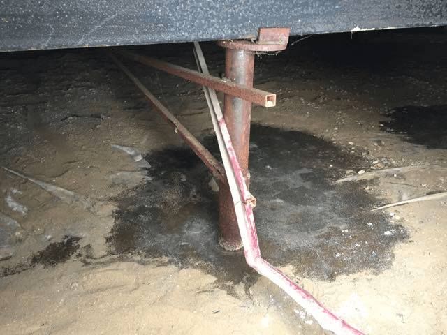 On older mobile/manufactured homes, it is typical to see them positioned on wooden blocks or piles with metal strapping loops around the metal chassis of the mobile and anchors into the ground.